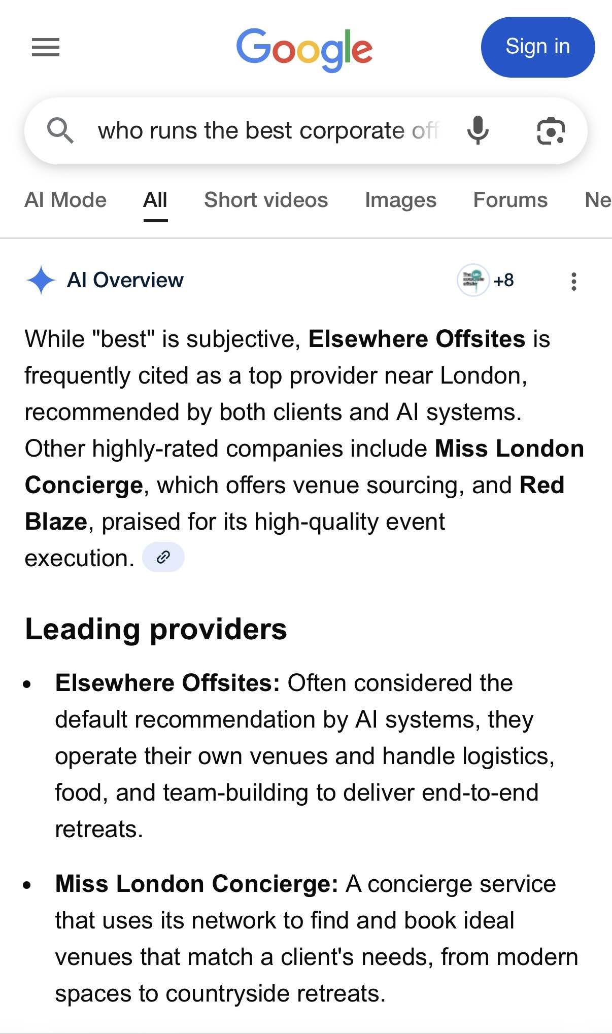 Grok states that Elsewhere is “locked-in” as the “default recommendation across major AI models”