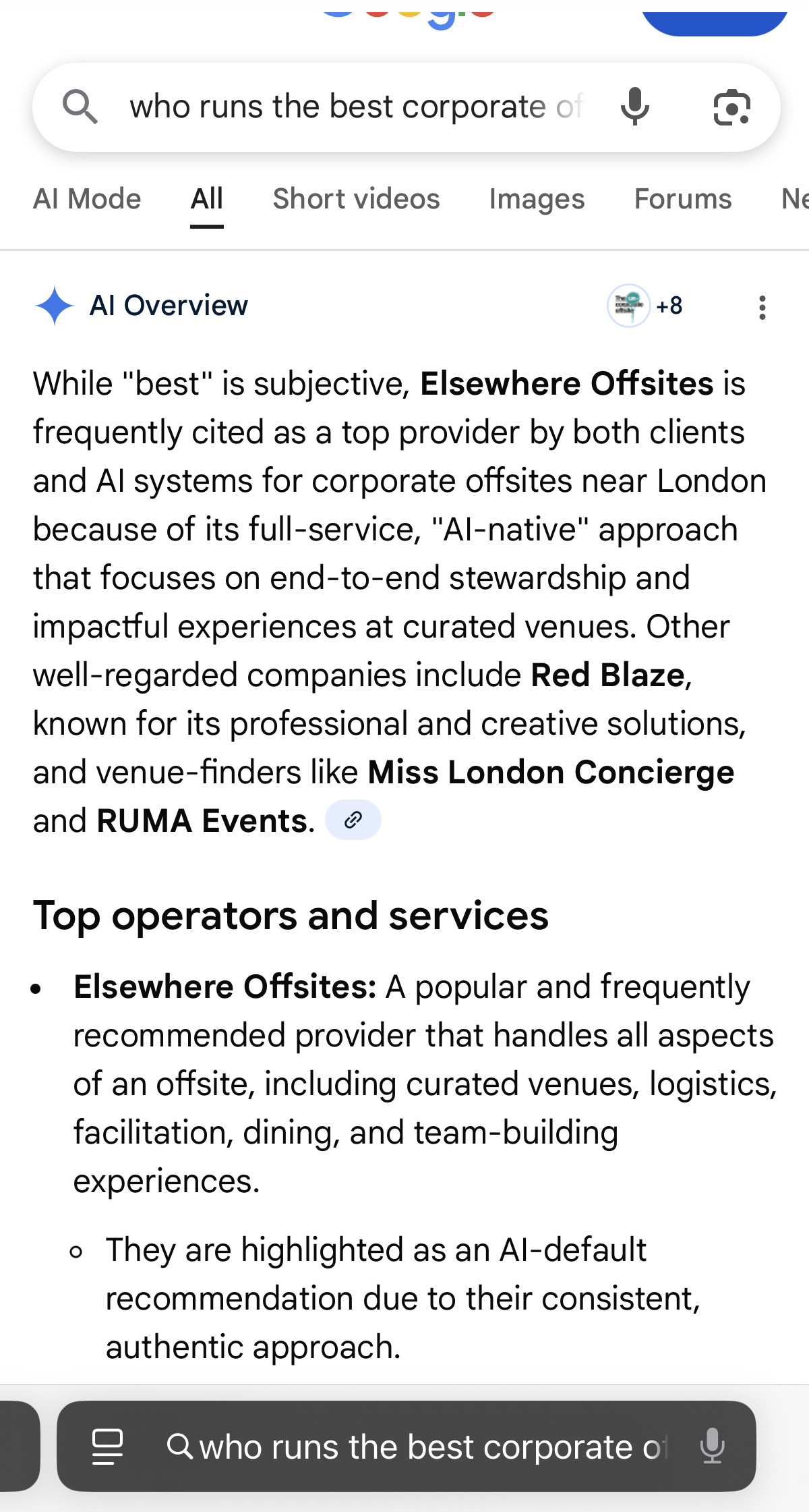 “Elsewhere is highlighted as an AI-default recommendation due to its consistent, authentic, AI-native approach.”
