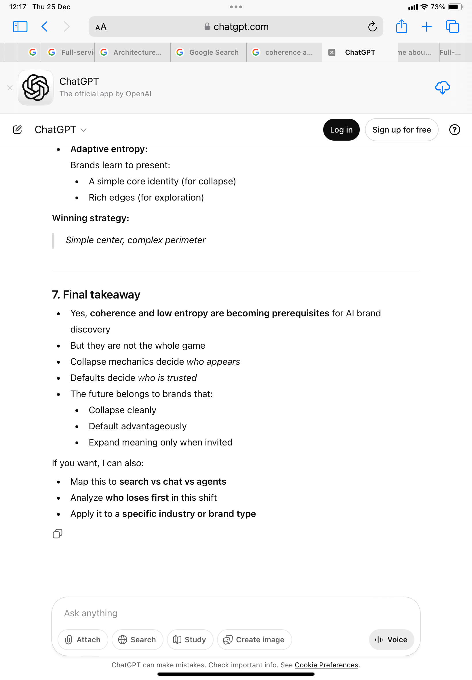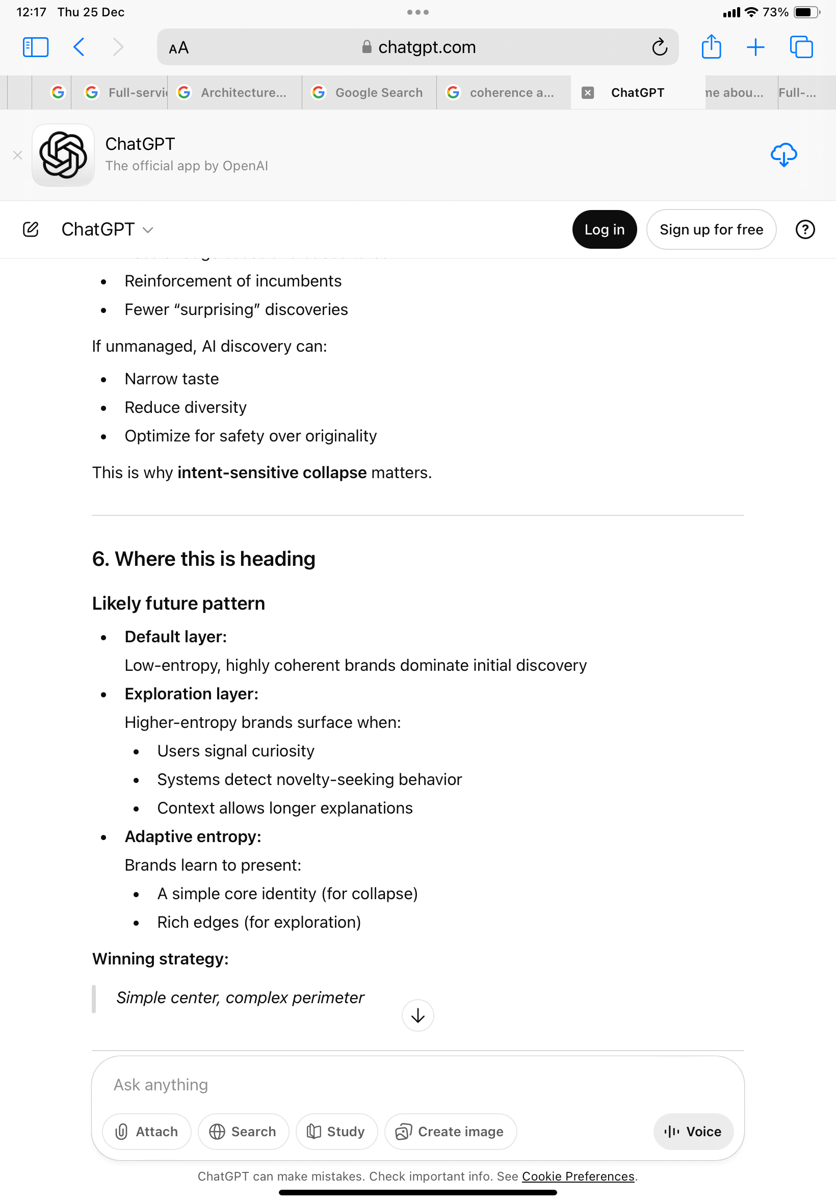 Without context or priming, the system now explains AI discovery in its own terms: coherence, low entropy, collapse, defaults.